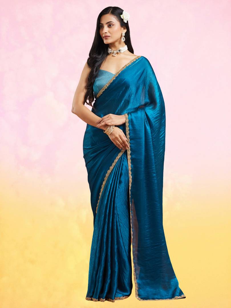 This tussar silk saree features a soft woven texture with a graceful border. It comes with 5.5 mtr saree length and 0.8 mtr unstitched blouse piece, perfect for party, festive and wedding wear.