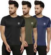 Cruister Solid Men Round Neck Dark Green, Black, Navy Blue T-Shirt