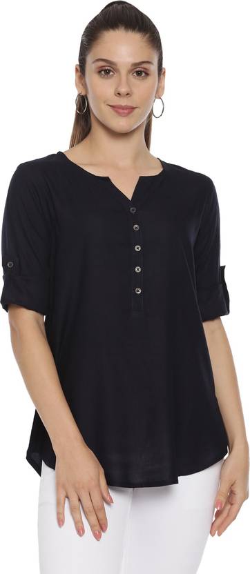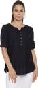 Crush Candy Women's Solid Black Rayon top with 3/4th Roll Up sleeve and front buttons, Perfect semi-formal for college and Office-wear. Style it with a pair of sneakers for a smart look.