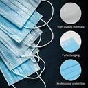 Cruzine 3 Ply Disposable Face Mask Ear Loop Non-Woven Fabric with Nose Clip and Reusable, Washable Surgical Mask With Melt Blown Fabric Layer (Blue, Free Size, Pack of 100, 3 Ply)