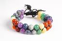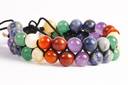 The Seven Chakra bracelet features seven different gemstones, each corresponding to seven chakras, with potential healing properties as follows: