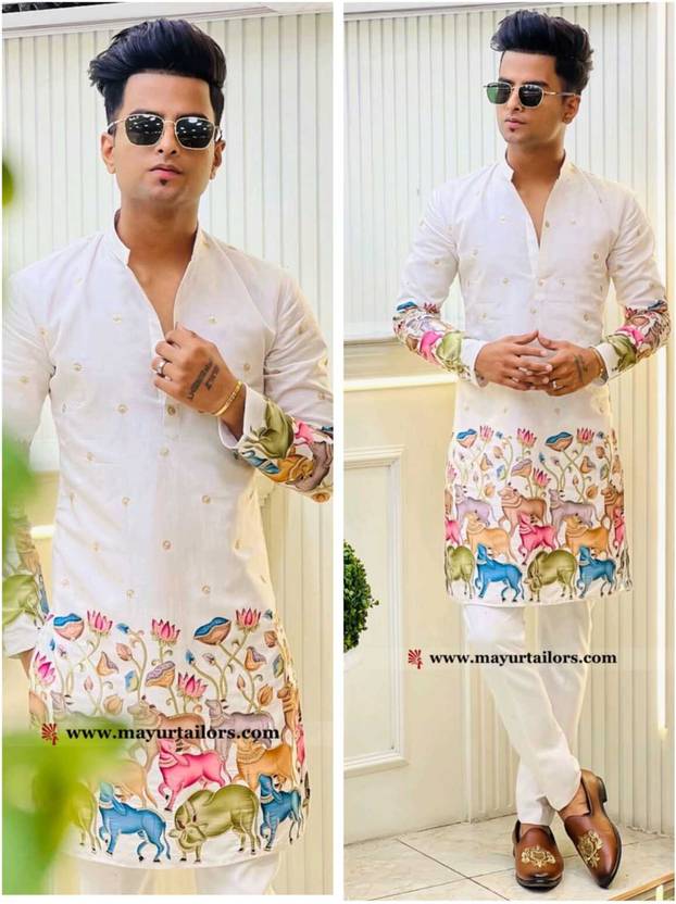 CRYSTALREVENUE Men Embroidered Straight Kurta (Multicolor)