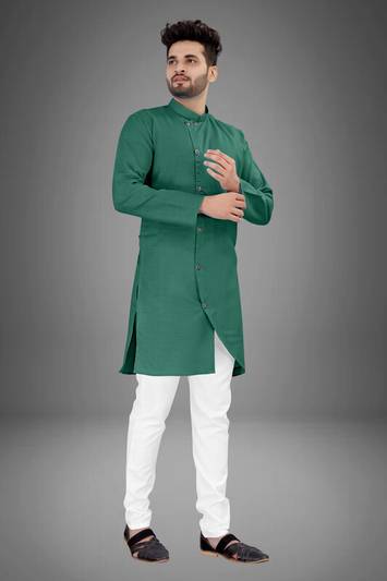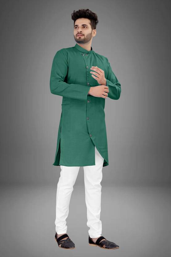 CRYSTALREVENUE Men Solid Straight Kurta (Dark Green)