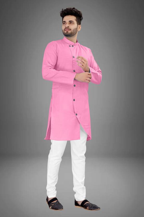 CRYSTALREVENUE Men Solid Straight Kurta (Pink)