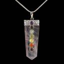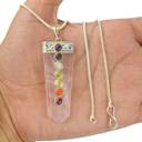 CRYSTU Natural Rose Quartz Pencil Shape 7 Chakra Pendant with Metal Chain for Unisex Quartz, Agate Crystal Pendant
