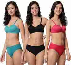 BYLKO Bra & Panty Set Solid Green, Maroon, Light Blue Lingerie Set