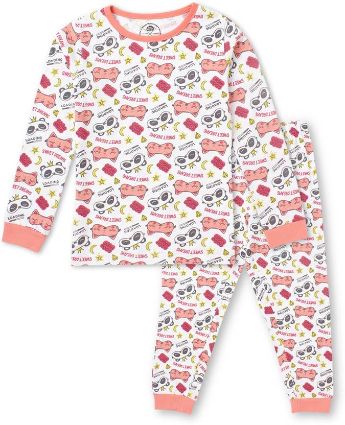Cub McPaws Kids Nightwear Girls Printed Cotton (Multicolor Pack of 1)