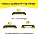 The Cube Club Adjustable Stepper Board.THREE HEIGHT ADJUSTMENTS | With a simple 'click & lock' mechanism, you can effortlessly switch between three heights: 15 cm (5.9"), 20 cm (7.9"), and 25 cm (9.8"). This versatility allows you to customize the intensity and challenge of your step exercises, catering to different fitness levels and training goals.
