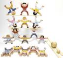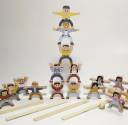 16 wooden human figures, 4 wooden balancing sticks, 1 small and 1 large ball, 1 user manual