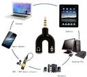 Product description Color:SET OF 4PCS One 3.5mm male plug to Two 3.5mm Female plugs Use for your Earphone + mic have two 3.5mm plugs (one Earphone + one mic ) Specifically for headsets with mic capability 3.5mm audio U shape splitter connects most devices with 3.5mm auxiliary port (AUX), like MP3 player, smartphone, tablet, computer etc, to two headphones or speakers, which is a great solution to share cool music, movies and games with your families and friends. It Supports Mobile phone, MP3 player, MP4, Tablet, Notebook, PC, Laptop and other Device. The metal case connector allows you to plug it to your source device withtout taking off your mobile/Tab case.