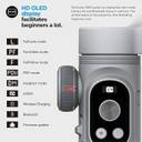 OLED Display Palm-Size 3-Axis Foldable Gimbal. To show up the gimbal modes and battery indicator on the unique OLED screen, the Smart X Pro gimble is more powerful than any smartphone gimbals. AOCHUAN Smart X Pro gimbal stabilizer works well with iPhone 15/14/13/12/11 Plus/Pro/Max, and most Android smartphones. Also, SMART X Pro's 10.5 x 4.9 x 2.6in in unfolding status, 6.2*4.3*2.1in(folded) and the net weight is 0.65 pound, but 250g payload.