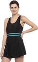 is a contemporary brand for women swimwear, activewear, and lingerie giving comfort as well as stylish and colorful looks. This is a single-piece solid black swimwear with sea green stripe. It has 3-inch shorts attached to it, which gives almost 1/3rd coverage to the thigh area, providing a secure fit. It has got pads attached to the bust, which can be removed as per your need. You can wear this on your next beach vacation or a pool party.