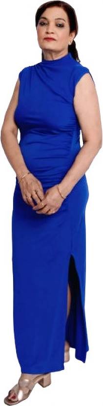 Acrylic Blend Stitched Straight Gown (Dark Blue)