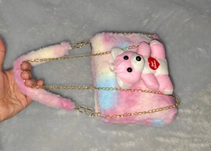 Elevate your little one’s accessory collection with this Adorable Furry Teddy Sling Bag for Girls, designed to blend charm with practicality. Featuring a soft, furry exterior in a vibrant tie-dye pattern, this bag instantly stands out with its adorable pink teddy bear holding a "Best Wishes" heart. The unique design is both playful and trendy, making it the perfect companion for young girls.