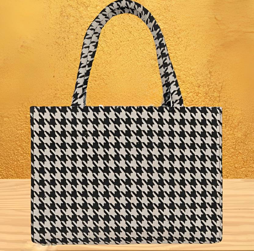 Hand Bag for Women Stylish Latest for Women Big Size Checks Design Jute Bag