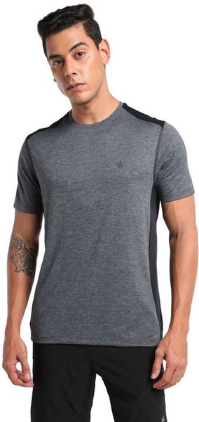 Men Solid Round Neck Polyester Grey T-Shirt