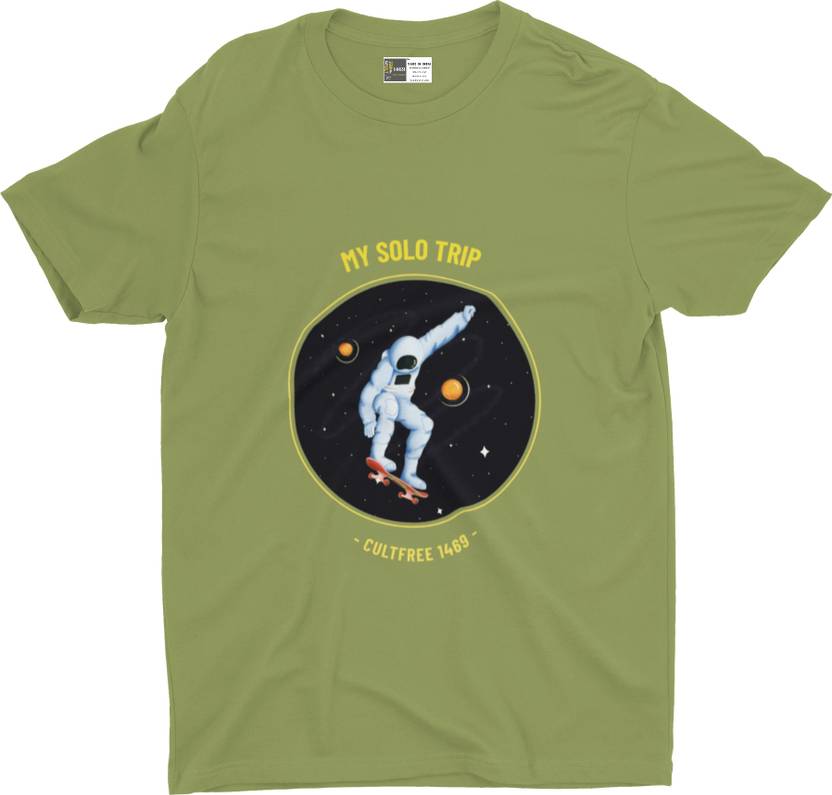 cultfree1469 Men Printed, Typography Round Neck Pure Cotton Green T-Shirt