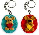 *Handmade wooden keychain of clay *pack of-2 *teddy bear pattern *unique product