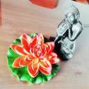 CURSOR Designs Red, Orange, Green Lotus Artificial Flower (6 inch, Pack of 1, Single Flower)
