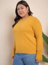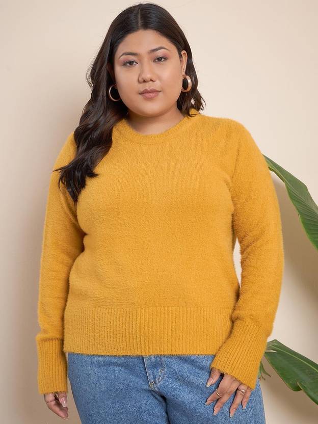 CURVY STREET Printed Round Neck Casual Women Yellow Sweater