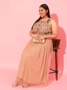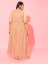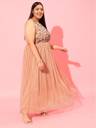 Peach Plus Size Embellished Net A-Line Midi Dress