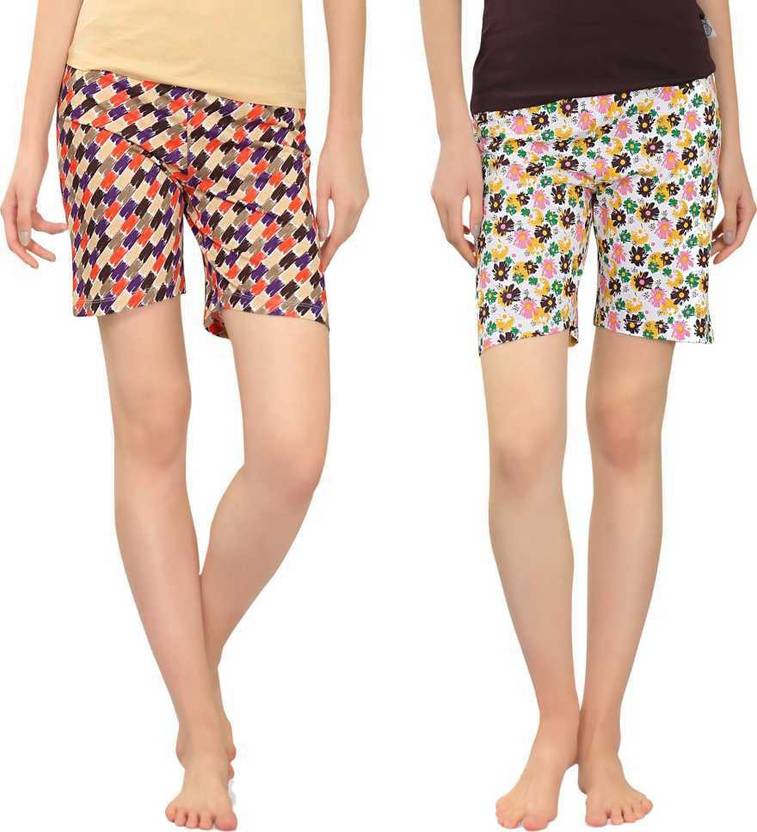 Short For Girls Casual Printed Cotton Blend (Multicolor, Pack of 2)