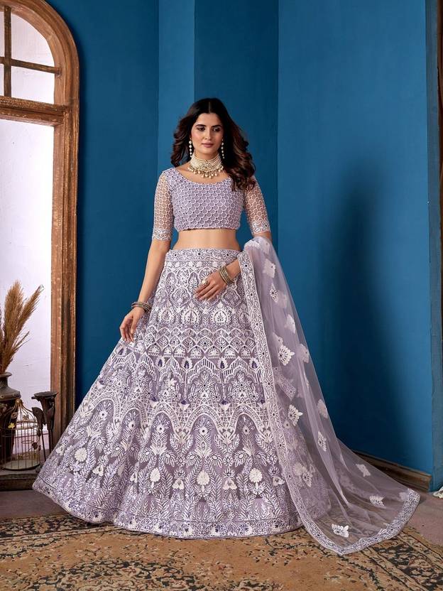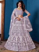Cute Fellow Embroidered Semi Stitched Lehenga Choli (Purple)