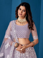 Sporting high-quality net fabric layered over a satin inner lining, the lehenga in this set offers a flowing structure with a subtle sheen that enhances its visual appeal. Complementing this, the dupatta in net fabric is crafted with a practical length that allows effortless draping. So, whether worn across both shoulders, pleated neatly, or styled freely, it adds sophistication and fluidity to the overall look.