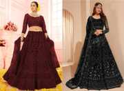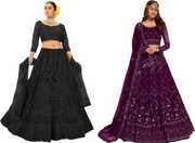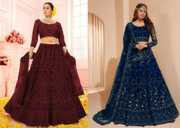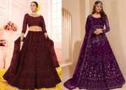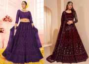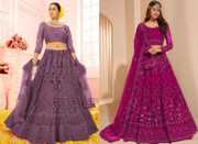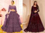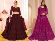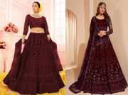 This elegant pack of 2 lehenga cholis features a stunning combination of classic Magenta and Wine designs. The Magenta lehenga showcases intricate embroidery on a rich fabric, paired with a matching dupatta and blouse, offering a timeless and graceful look. The Wine lehenga dazzles with delicate sequin and thread work, enhanced by a beautifully embroidered net dupatta and full-sleeve blouse. Perfect for weddings, festive occasions, or traditional celebrations, this combo brings together sophistication, tradition, and style in one luxurious set.