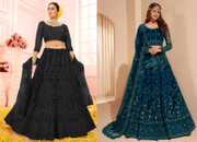 Lehenga Fabric :net, Blouse Fabric : Net, Inner: Satin with Cancan. Lehenga Work :Embroidred, Blouse Work :Embroidery, Dupatta Work : Embroidery Border Contains: 1 Semi-Stitched Lehenga with Dupatta and unstitched Blouse.
