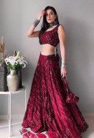 Cute Fellow Embroidered Semi Stitched Lehenga Choli (Maroon)