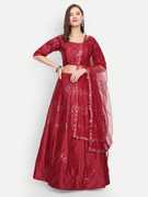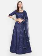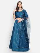 The lehenga is semi stitched with inner attached.It can be fit up to 44 inch waist and 44 inch height with 2.2 mtr flare. The blouse is unstitched.