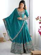 Thanks to its embroidered and embellished detailing, this women's lehenga, choli and dupatta set brings out a decorative appearance. The combination of thread work and added embellishments creates a layered effect, giving the attire a traditional and graceful presence. Furthermore, each design element has been carefully placed to highlight the overall pattern, making this outfit visually engaging.