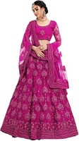 Cute Fellow Embroidered Semi Stitched Lehenga Choli (Pink)