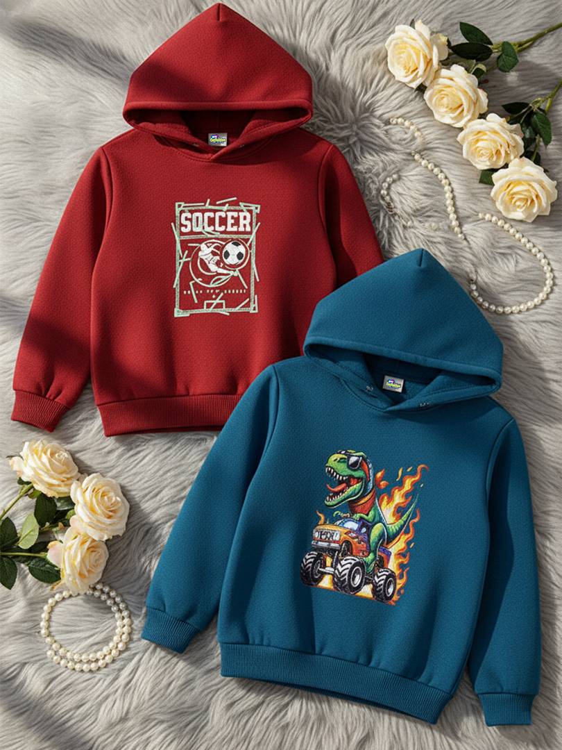 Keep your little one warm and stylish with this Cutiekins full-sleeves fleece hoodie. Designed for comfort and durability, it features a playful sticker print on the front, perfect for casual outings or cozy indoor days. Soft fleece fabric ensures all-day warmth while allowing easy movement for active kids.