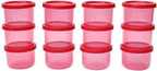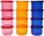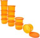 | Other Features | - Airtight and leak-proof container Can store gravy items without worrying about spilling Keeps dry fruits, sugar, vegetables etc to keep them fresh and hygenic Give yourself a modern and stylish look with these stackable smart, airtight containers to see contents and check quantities Can be stored in purse/handbags Microwave safe, 106-percent food grade, microwave safe, leakproof, freezer safe, made from Virgin Plastic only and dishwasher safe, Air Tight, Liquid Tight, Nestable, Stackable and Flexi Lid. One lid fits multiple bases. Use in refrigerator, freezer or outside., ?Safely used in the microwave up to 100-111°C (no direct flame) for any length of time as long as there is moisture content., Package Content - Set of 12, Orange, 150 ml, MADE IN INDIA