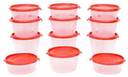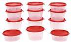 Cutting EDGE Plastic Grocery Container - 1000 ml, 750 ml, 500 ml (Pack of 12, Clear, Red)