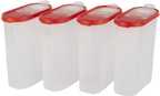 Pour With Ease, No More Spilling, Mess-Free! The lids feature a see-through window to see your stuff at a glance, and the convenient flip-top lid made it super easy to access snacks and treats. The lid window stays open when in use. Made from heavy duty, high quality plastic, these containers give you several years of hassle-free usage. They do not break or crack and offer a long enduring adornment for your modular kitchen. They are designed to stand the rigors of day to day life. Known for their innovative design, this Cutting Edge containers set has a very sleek look that goes with any kitchen decor. You can keep them anywhere from the kitchen cabinet to the table top. The containers are made of food-safe material; they do not affect the quality of the food items stored in them. They are made of BPA-free food grade plastic and are known to comply with safety standards. These containers may be used to heat food in a microwave without the lid as it is microwave safe. The containers can also be used to store food in the refrigerator as they are freezer friendly as well. This set of sturdy kitchen storage containers are easy to clean and maintain. They can be cleaned in a dishwasher or washed manually using a non-abrasive scrub/ sponge along with dish wash soap.