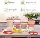 1. Perfect for Organizing your Kitchen, Modular & Stackable by Design and specially suited materials to give you longer than average life-span. Start off with just a few or a complete set and add on to them as your needs grow. These come in a variety of colors and models to suit various needs including dispensing lids or top-view lids. 2. BPA Free, non-toxic and completely Food Grade. Microwave Safe (Without Lid) & Dishwasher Safe too! Whats more, these are also produced in Specially Audited Green Factories to ensure that your containers are safe for your family, the community and the environment all at once! 3. Air Tight freshness seal lock ensures that your contents stay fresh until you need them. The Freshness Seal prevents entry of moisture and inhibits the growth of any fungus, bacteria and keeps away bugs, pests and other insects. 4. Supreme Quality at Cost Effective Prices - Now you can refuse to compromise on your family's health and safety without compromising on your budget.