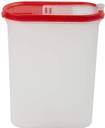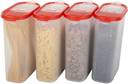(Pack Of 4, Red) Flip-Top Modular Dispenser Containers Oval Set For Rice| Dal| Atta| Flour| Cereals| Pulses| Snacks| Stackable- 2400 ML Each (Free Plain Lids Extra for Each Container)