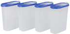 Pour With Ease, No More Spilling, Mess-Free! The lids feature a see-through window to see your stuff at a glance, and the convenient flip-top lid made it super easy to access snacks and treats. The lid window stays open when in use. Made from heavy duty, high quality plastic, these containers give you several years of hassle-free usage. They do not break or crack and offer a long enduring adornment for your modular kitchen. They are designed to stand the rigors of day to day life. Known for their innovative design, this Cutting Edge containers set has a very sleek look that goes with any kitchen decor. You can keep them anywhere from the kitchen cabinet to the table top. The containers are made of food-safe material; they do not affect the quality of the food items stored in them. They are made of BPA-free food grade plastic and are known to comply with safety standards. These containers may be used to heat food in a microwave without the lid as it is microwave safe.