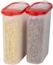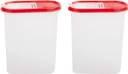 (Pack Of 2, Red Lids) Flip-Top Modular Dispenser Containers Oval For Rice| Flour| Cereals| Pulses| Snacks| Stackable- 2400 ML Each (Free Plain Lids Extra For Each Container)