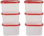 • Pack Of 6 |1200 ml Each | Red | Flip-Top Modular Dispenser Containers Oval Set For Cereals| Pulses| Snacks (Free Plain Lids Extra for Each Container)