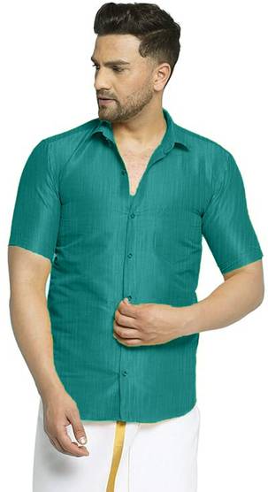Men Regular Fit Solid Spread Collar Casual Shirt