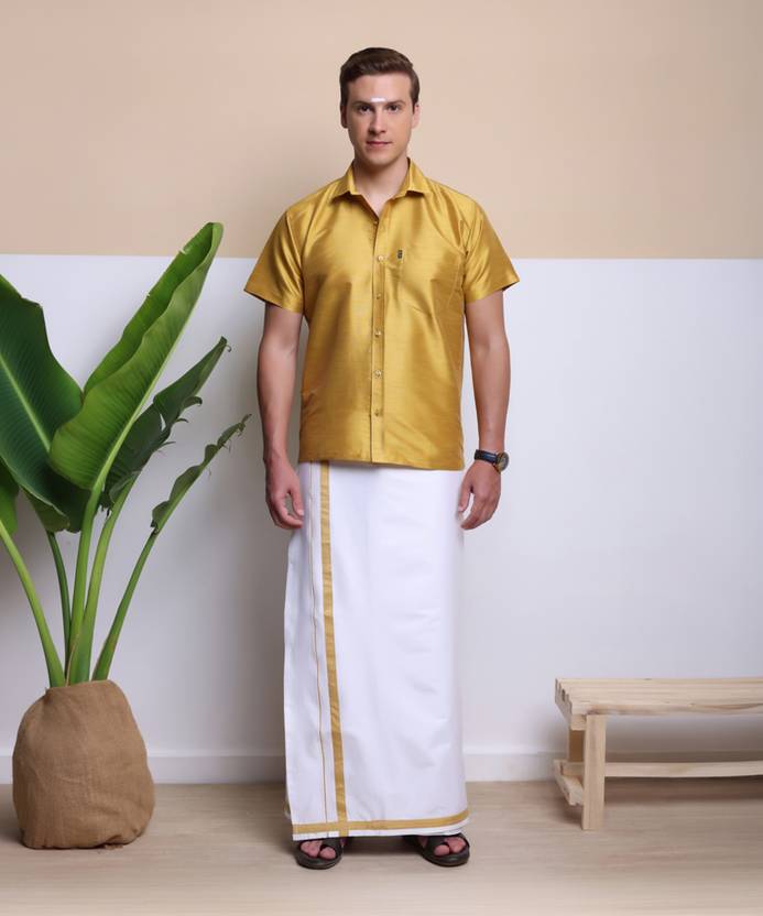 A lungi shirt is a traditional garment typically worn in South Asia, particularly in India, The lungi is a type of sarong, usually made of cotton or silk, and is wrapped around the waist. When paired with a shirt, it creates a comfortable and casual outfit. The shirt worn with a lungi is often a simple, button-down style, made from lightweight fabric to match the relaxed nature of the lungi. The ensemble is popular for its comfort and ease of movement, making it suitable for both daily wear and informal occasions.