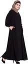 Women Modest Abaya Dress With Front Open & Side Pockets Black