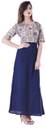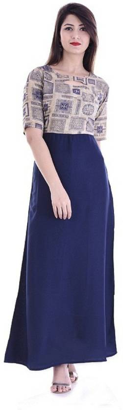 CYNCA Women Printed Cotton Rayon Flared Kurta (Blue, Grey)