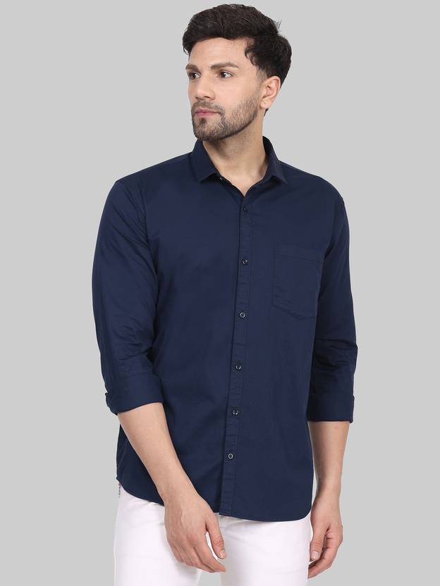 CYPHUS Men Solid Casual Dark Blue Shirt