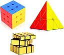 D ETERNAL Cube Combo Set 3x3, Pyraminx Triangle and Gold Mirror Cube (3 Pieces)
