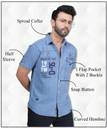 These half sleeve denim casual shirt from D... finish have spread collar, with single flap pocket and snap button. These half sleeve denims shirt make you smart and give new casual look.